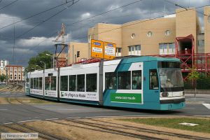 Triebwagen 604 auf Linie 7 bei der Haltestelle Universitätsklinikum, aufgenommen am 08. Mai 2007.