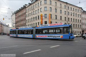 Triebwagen 2157 auf Linie 27 zum Scheidplatz an der Haltestelle Karl-Theodor-Straße, aufgenommen am 27. Oktober 2007.