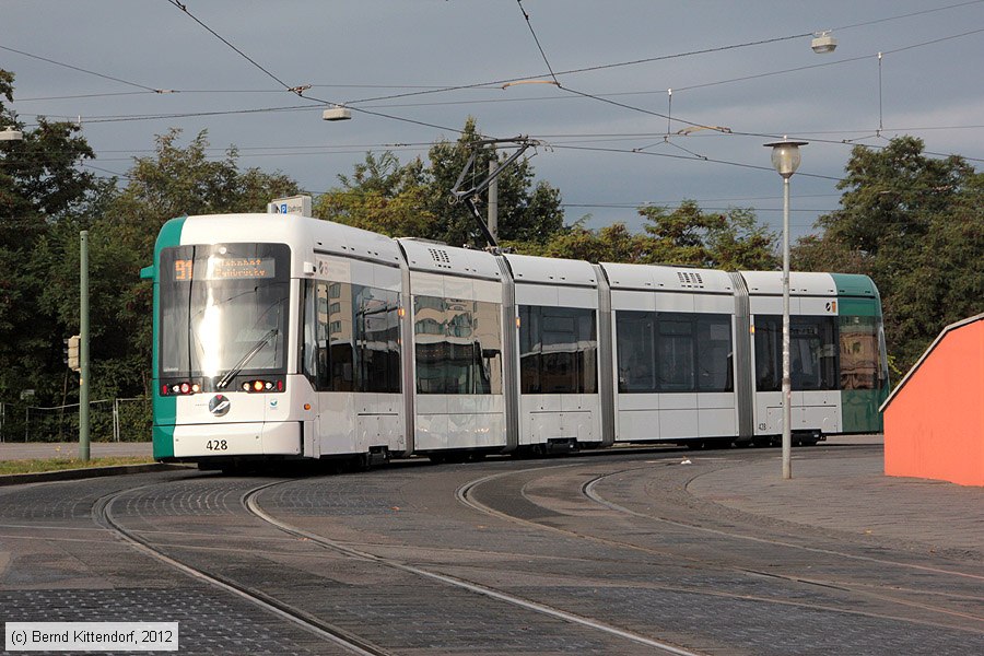 | Straßenbahn Potsdam - 428 Triebwagen 428 auf Linie 91 zum Bahnhof Rehbrücke bei der Ankunft an der Haltestelle Hauptbahnhof, aufgenommen am 15. Oktober 2012. Photo: Bernd Kittendorf (info@bernd-kittendorf.de) Homepage: www.bernd-kittendorf.de |