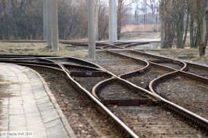 Gleise an der Einfahrt zur Wendeschleife der Endstelle Mecklenburger Allee, aufgenommen am 17. März 2010.