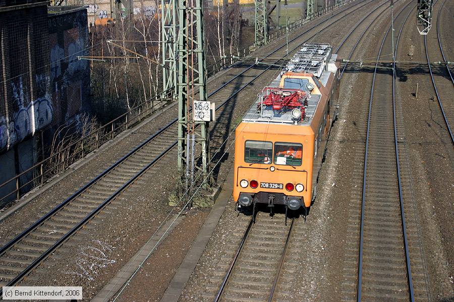 | Deutsche Bahn - 708329-8 Arbeits-Triebwagen 708 329-8 in Dortmund von der Brücke an der Straßenbahnhaltestelle Heinrichstraße aus gesehen. Die Aufnahme ist am 13. März 2006 entstanden. Photo: Bernd Kittendorf (info@bernd-kittendorf.de) Homepage: www.bernd-kittendorf.de |
