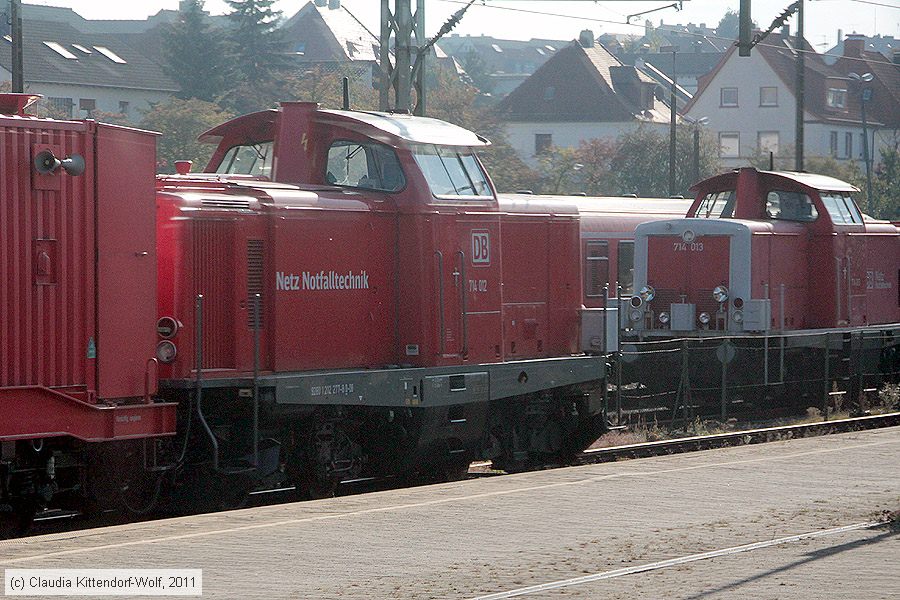 | Deutsche Bahn - 714 012 Lok 92 80 1212 277-8 D-DB in Fulda Hauptbahnhof, aufgenommen am 04. Oktober 2011. Rechts im Bild ist auch die Lok 714 013 zu sehen. Photo: Claudia Kittendorf-Wolf (info@claudia-blondie-wolf.de) Homepage: www.claudia-blondie-wolf.de |