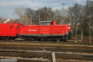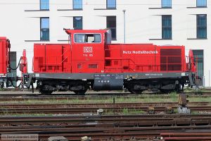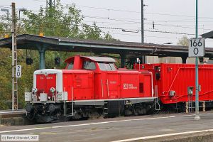 Lok 714015-5 in Mannheim Hauptbahnhof, aufgenommen am 17. April 2006. Diese Lok wurde 1964 von Henschel geliefert und war mit den Betriebsnummern V100 2160 und 212160-6 (ab 1968) im Einsatz. Nach dem Umbau als Zuglok für Rettungszüge wurde sie im Jahr 1997 zur 714015-5.