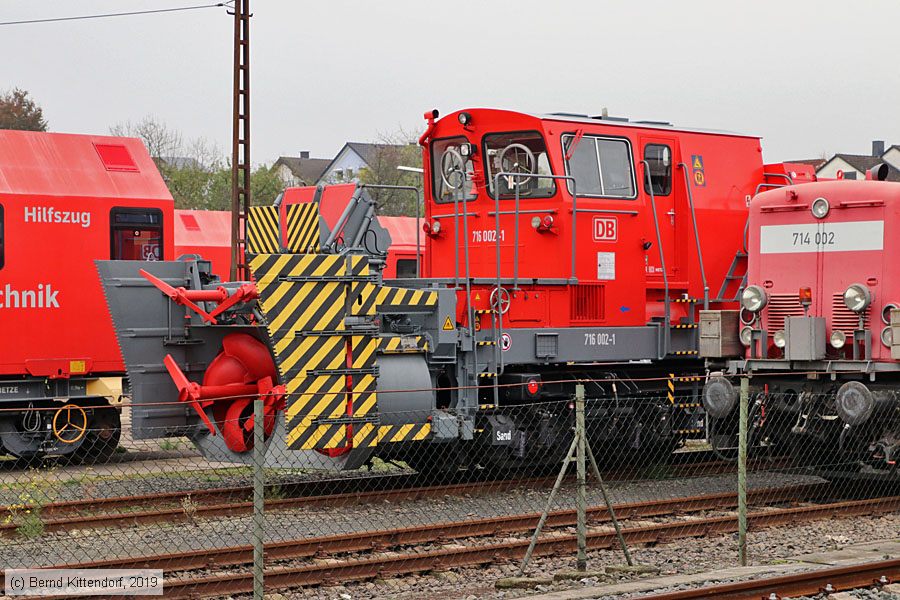 | Deutsche Bahn - 716002-1 Schneeschleuder 716 002-1 vom Hersteller Beilhack aus dem Jahr 1994, aufgenommen in Fulda am 28. Oktober 2019. Photo: Bernd Kittendorf (info@bernd-kittendorf.de) Homepage: www.bernd-kittendorf.de |