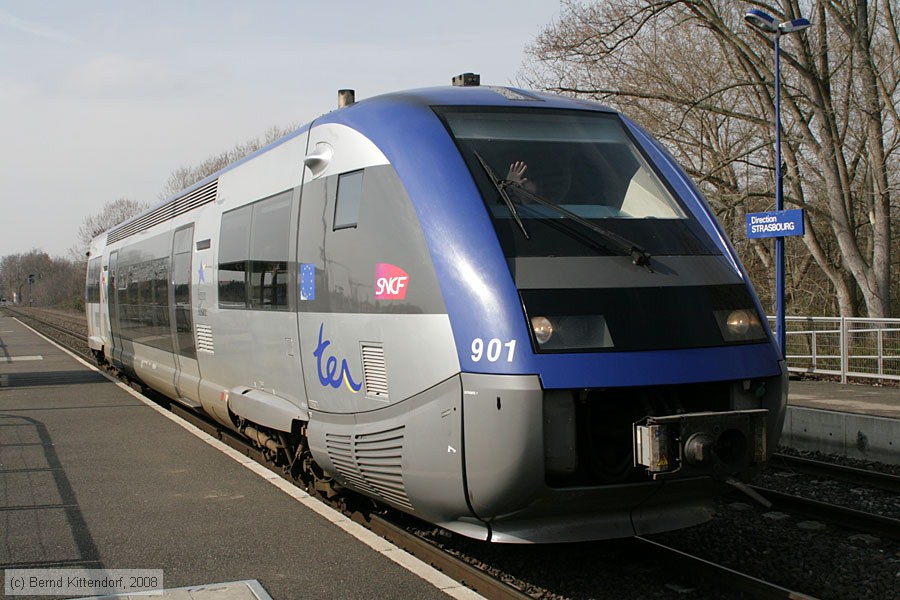 | SNCF - X73901 Triebwagen X 73901 beim Halt in Hoenheim Tram, aufgenommen am 15. März 2008. Photo: Bernd Kittendorf (info@bernd-kittendorf.de) Homepage: www.bernd-kittendorf.de |