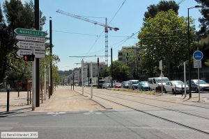 Strecke von der Haltestelle Piscine Alain Bernard in Richtung La Tourtelle, aufgenommen am 08. Juni 2015.