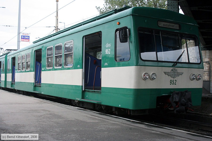 | Budapest - Vorortbahn HEV - 952 Triebwagen 952 an der Endstelle Vágóhíd, aufgenommen am 20. September 2008. Photo: Bernd Kittendorf (info@bernd-kittendorf.de) Homepage: www.bernd-kittendorf.de |