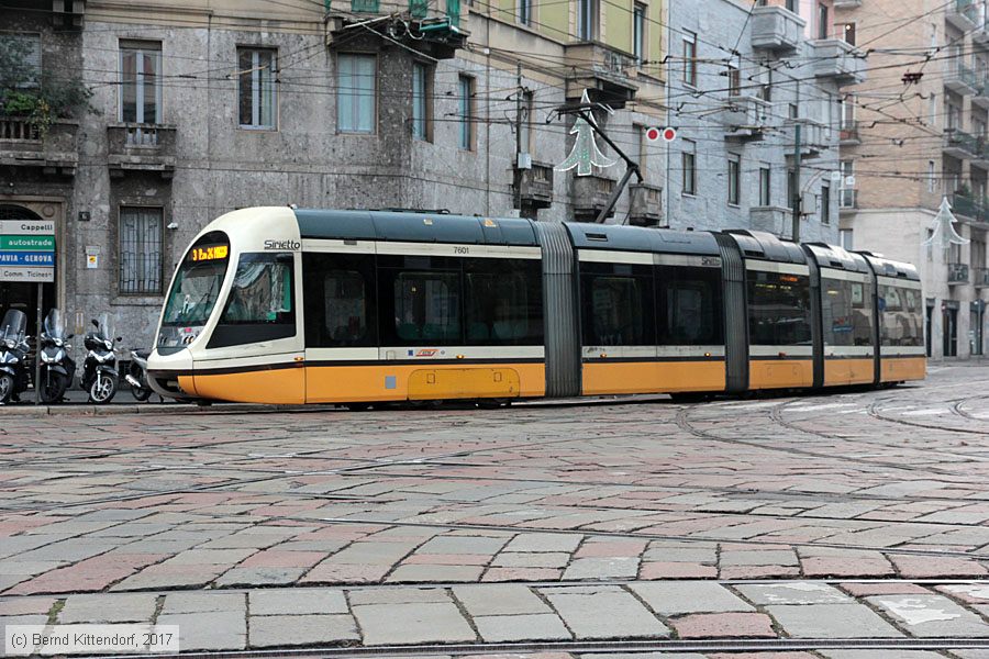 | Tram Milano - 7601 Triebwagen 7601 an der Piazzale di Porta Lodovica beim Abbiegen in die Via Pietro Teuliè, aufgenommen am 12. Dezember 2017. Photo: Bernd Kittendorf (info@bernd-kittendorf.de) Homepage: www.bernd-kittendorf.de |