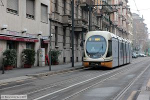 Triebwagen 7617 auf Linie 24 zur Piazza Fontana an der Haltestelle Vigentino, aufgenommen am 27. August 2019. Auf dieser Linie werden aktuell mehrere Bahnsteige erneuert und im Fahrplan sind die Fahrten der Niederflur-Triebwagen ausgewiesen. An dieser Haltestelle gibt es einen erhöhten Bahnsteig mit Überdachung und rechts davon einen ohne, beide auch mit einem taktilen Leitsystem. Ein dritter, kürzerer und nicht möblierter Bahnsteig befindet sich an einem wenig genutzten weiteren Gleis.