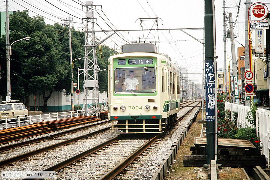 | Straßenbahn Tokio - Toden Arakawa - 7004 Triebwagen 7004, aufgenommen am 27. Juni 1992. Photo: Detlef Kettner, Scan: Bernd Kittendorf (info@bernd-kittendorf.de) Homepage: www.bkcw-bahnbilder.de |