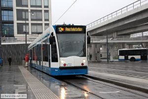 Triebwagen 2098 auf Linie 12 nach Amstelstation an der Endstelle Station Sloterdijk, aufgenommen am 12. November 2013.