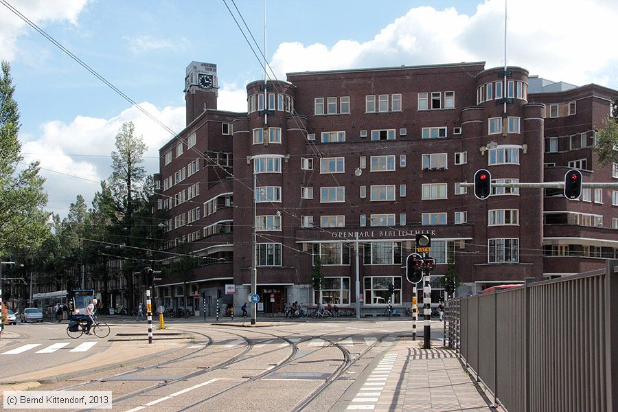 | Straßenbahn Amsterdam - Anlagen Haltestelle Roelof Hartplein, aufgenommen am 03. September 2013. Nach links fahren die Linien 3 und 12, nach rechts fahren die Linien 5 und 24. Die öffentliche Bibliothek hier ist für Rollstuhlbenutzer zugänglich und verfügt auch über ein geeignetes WC. Photo: Bernd Kittendorf (info@bernd-kittendorf.de) Homepage: www.bernd-kittendorf.de |