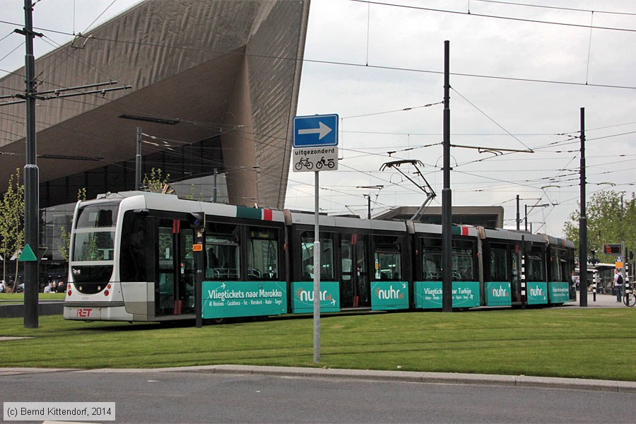 | Straßenbahn Rotterdam - 2059 Triebwagen 2059 auf Linie 8 nach Kleiweg bei der Ankunft an der Haltestelle Rotterdam Centraal, aufgenommen am 21. Mai 2014. Photo: Bernd Kittendorf (info@bernd-kittendorf.de) Homepage: www.bernd-kittendorf.de |