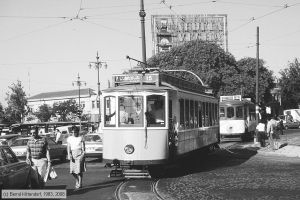 Strassenbahn-Triebwagen 337 auf Linie 19, aufgenommen am 06. August 1985.