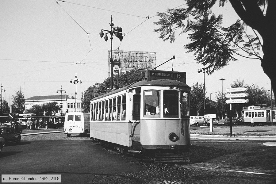 | Lisboa - Tram - 351 Strassenbahn-Triebwagen 351 auf Linie 15, aufgenommen am 18. August 1982. Photo: Bernd Kittendorf (info@bernd-kittendorf.de) Homepage: www.bernd-kittendorf.de |