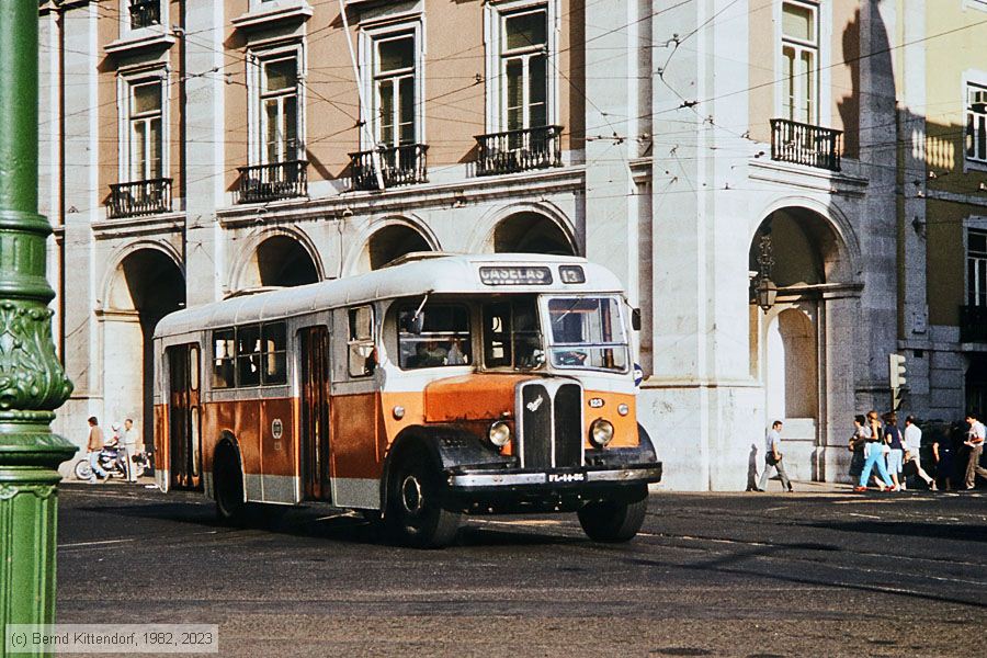 | Lisboa - Stadtbus - 123 Bus 123 (Kennzeichen FL-14-86, Typ AEC Regal III) auf Linie 13 am Praça do Comércio, aufgenommen am 16. August 1982. Photo + Scan: Bernd Kittendorf (info@bernd-kittendorf.de) Homepage: www.bernd-kittendorf.de |