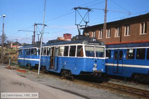 Triebwagen 6 auf Linie 21, aufgenommen am 26. März 1990. Das Fahrzeug wurde von ASEA/ASJ im Jahr 1945 gebaut.
