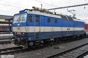 Lok 91 56 6361 101-9 SK-ZSSK in Bratislava Hlavná Stanica, aufgenommen am 24. Februar 2017. Diese Lokomotive ist 2013 durch Umbau aus der Lok 163 102-7 (Hersteller Škoda, Typ 99E1, Baujahr 1991) entstanden und gehört nun zum Typ 99Em.