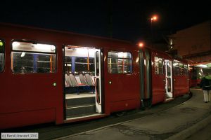 Fahrgastraum im hinteren Fahrzeugteil des Triebwagens 7132, aufgenommen am Abend des 25. Februar 2010.
