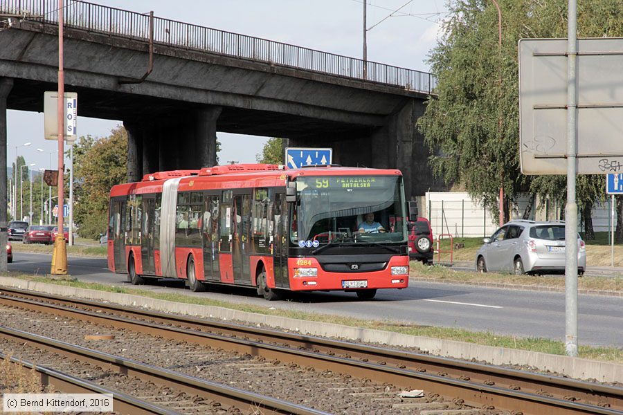 | Stadtbus Bratislava - 4264 Gelenkbus 4264 (Zulassung/Kennzeichen BL 135KG) auf Linie 59 bei der Haltestelle ŽST Vinohrady, aufgenommen am 02. September 2016. Das Fahrzeug gehört zu einer Serie von Bussen des Typs SOR NB 18 City vom Hersteller SOR Libchavy aus dem Jahr 2015 und ist 18,75 m lang und 2,55 m breit. Der Einstieg für Rollstuhlbenutzer befindet sich an der mittleren der fünf Doppeltüren. Photo: Bernd Kittendorf (info@bernd-kittendorf.de) Homepage: www.bernd-kittendorf.de |