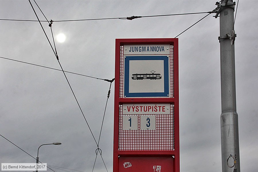 | Straßenbahn Bratislava - Anlagen Schild am Bahnsteig für den Ausstieg (Výstupište) an der Endstelle Petržalka - Jungmannova, aufgenommen am 24. Februar 2017. Hier verkehren die Linien 1 und 3. Photo: Bernd Kittendorf (info@bernd-kittendorf.de) Homepage: www.bernd-kittendorf.de |